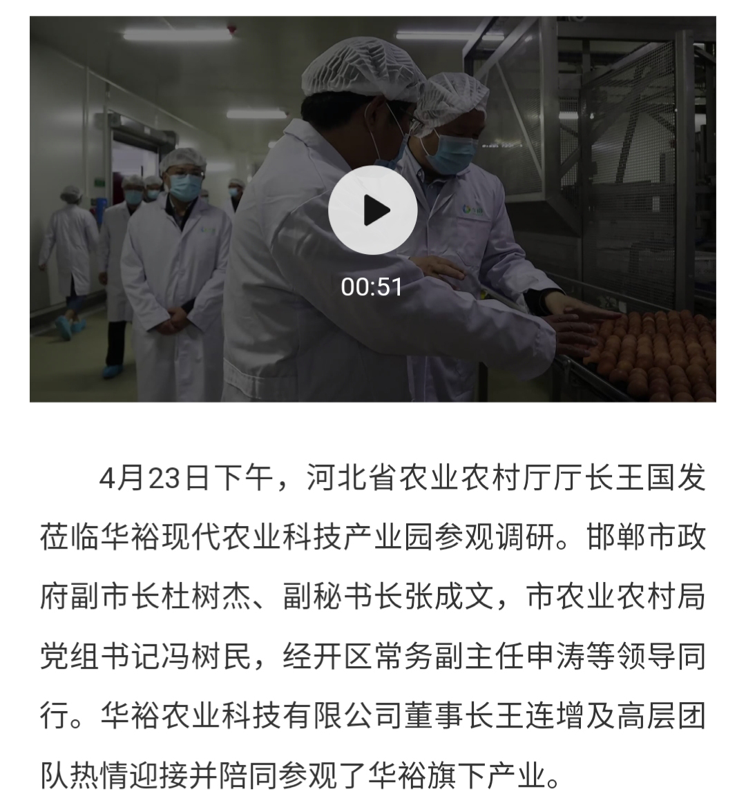 河北省農業農村廳廳長王國發蒞臨華裕參觀調研